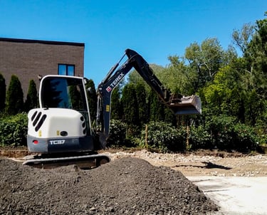Teikiame įvairias paslaugas su mini ekskavatoriumi ir rotaciniu lazeriniu nivelyru. Viskas ko reikia Jūsų kiemui , sklypui ir kitiems žemės darbų poreikiams.